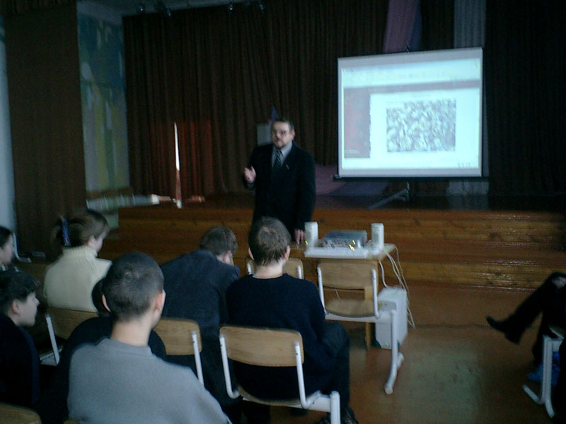 Der Vorsitzende der Krasnojarsker Gesellschaft "Memorial", Alexej Babij, verwirklichte eine Zusammenkunft von Schülern der höheren Klassenstufen, Studenten der Pädagogischen Lehranstalt und Geschichtslehrern aus der Stadt Jenissejsk und der Jenissejsker Region.