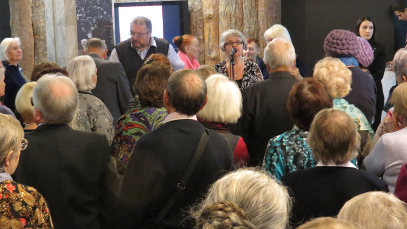 Im Hintergrund – ein Teil der Ausstellung des Museums des