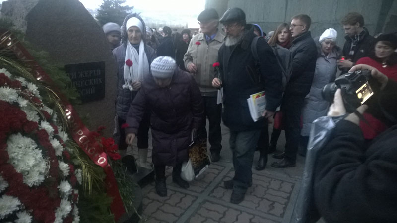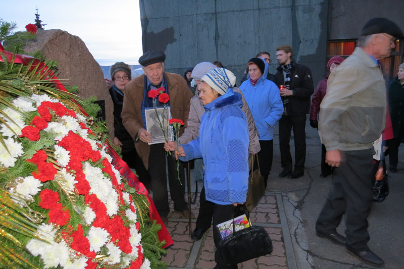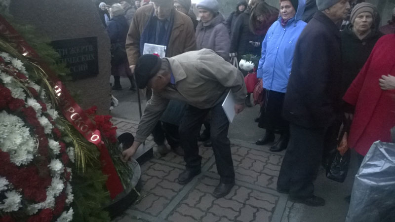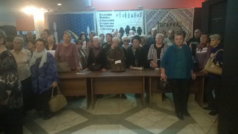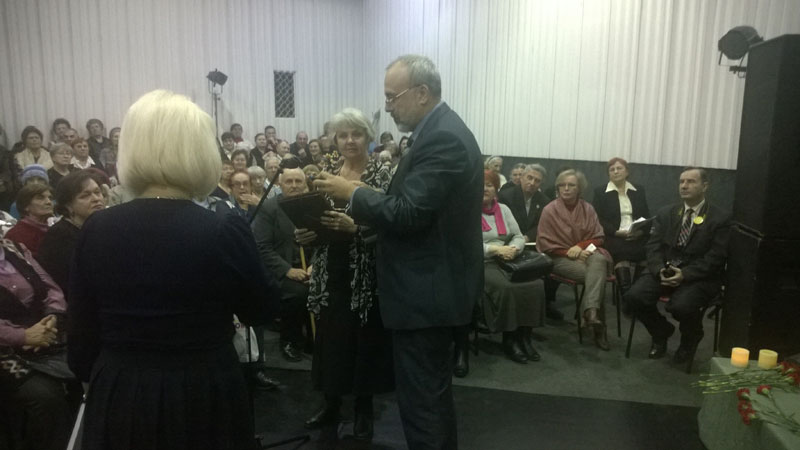überreichte den Initiatoren des Gedenksteins in der Ortschaft Jermakowskoje –