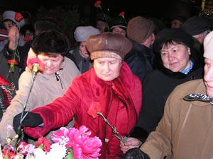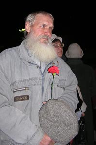 After the concert the whole “transport” (to be understood as an allusion to travels of prisoners under escort; translator’s note) moved off to the memorial stone in front of the Museum of Culture and History. Some time or other there will be a real memorial in Krasnoyarsk. Until then – and this is much more important – the Books of Memory will be published. The first volume is already available, the second is going to be presented within short, the third is already being under preparation. We must deeply bow to the self-sacrifying fighters of the “Memorial” organization – for their long-standing work and efforts. And because they prevented a Stalin monument to be erected in our town.