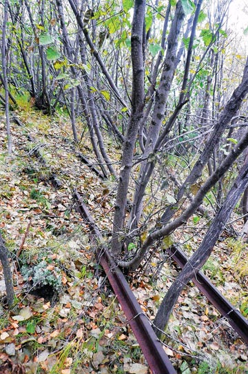 The larches in this area, the polar region, are simply oversized, they look like pushed away rails rearing up towards heaven. Wooden rails. Rails to nowhere, rails which lead straight to heaven.