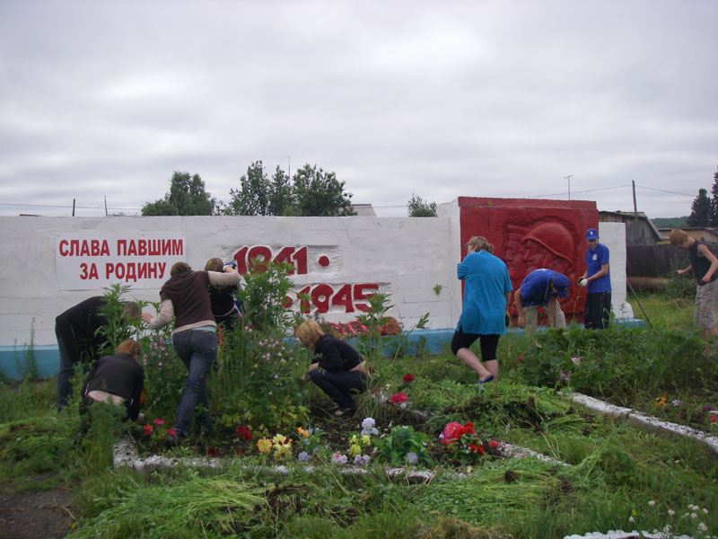 Together with local students we cleaned the place around the memorial erected in