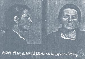 МАРУСЕВИЧ Валентина Осиповна. Род. в 1902 в с.Тасеево Канского уезда Енисейской губ. Образование начальное. Проживал в г. Канске. Переплетчица в управлении. Арестована 31.10.1920. Обвинение в КРО. Дело прекращено 28.05.1921 Красноярской ГубЧК за недоказанностью по реабилитирующим обстоятельствам (П-22754).