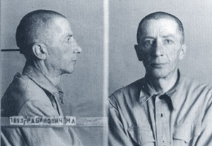 РАБИНОВИЧ Соломон Борисович. Род. в 1878 Род. в местечке Росляково Слонимскрй вол. Гродненской губ. Еврей (поляк), малограмотный. Из крестьян. Беспартийный. Проживал в г. Красноярск. Слесарь в лестресте. Арестован 05.10.1927. Обвинение по ст. 58-11, 58-13 УК РСФСР. Дело прекращено 01.03.1931 01.03.1931 КОС ОГПУ за недостаточностью собранных доказательств для привлечения к уголовной ответственности (ст. 4 п. 5 УПК РСФСР), освобожден из-под стражи немедленно .(П-1631).