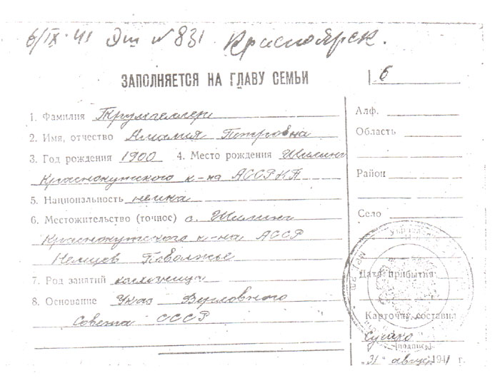 1941 г. из АССР НП в Красноярский край