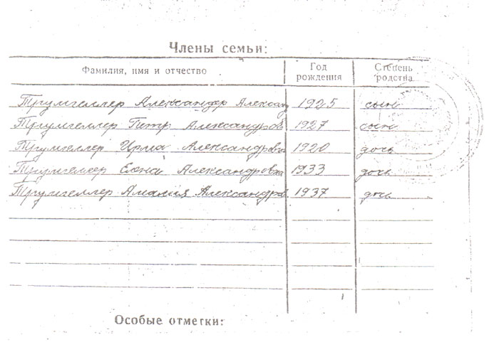 ТРОМПЕ Иван Иванович (Иоганн Иоаннович). Род. 1908. Уроженец и житель г. Марксштадт АССР НП. Немец, педагог. Состав семьи: жена Виктория Петровна