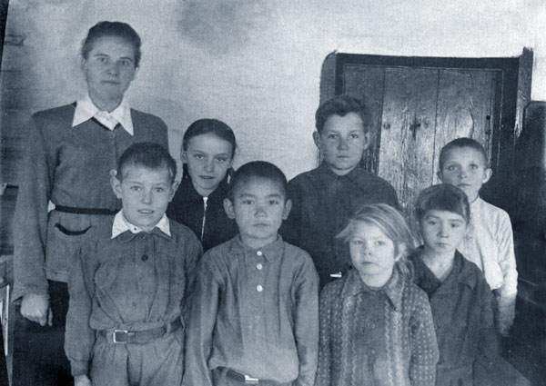 В 1968 году я получил письмо от Галины Ивановой. Она написала мне из Абакана, где училась в пединституте. Мы с ней учились вместе в Таловке Усинского (Ермаковского) района. В школе было только 7 учеников. У меня сохранилась фотография тех лет (1955 год). Рядом с нашей учительницей – Галя Иванова, затем – я, Ян Арула, рядом со мной – Иван Иванов. В первом ряду слева – Виктор Охотников. Фамилии других не помню.