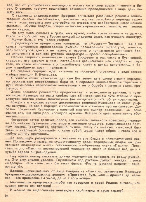 Чудный текст, а главное - актуальный. Как будто не в 1991году в вестнике КП, а в 2011 в ЖЖ прочитал. Правильно Экклезиаст говорил - и кружит ветер, и кружит, но ничего нового под луной нету...