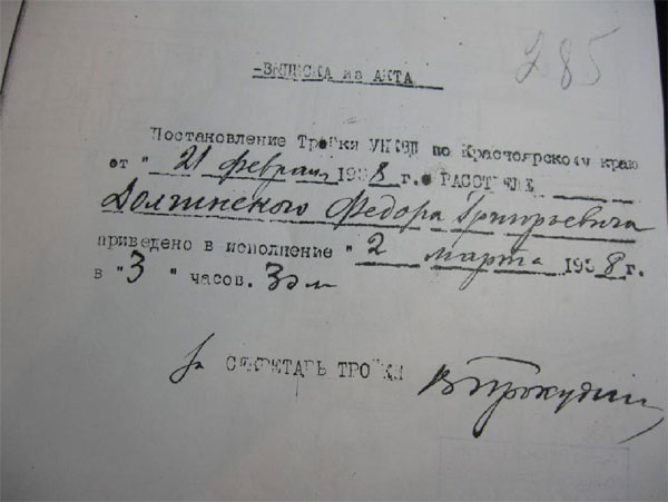 Краслаге (застрелен). Архив Краслага знает только то, что захоронен около