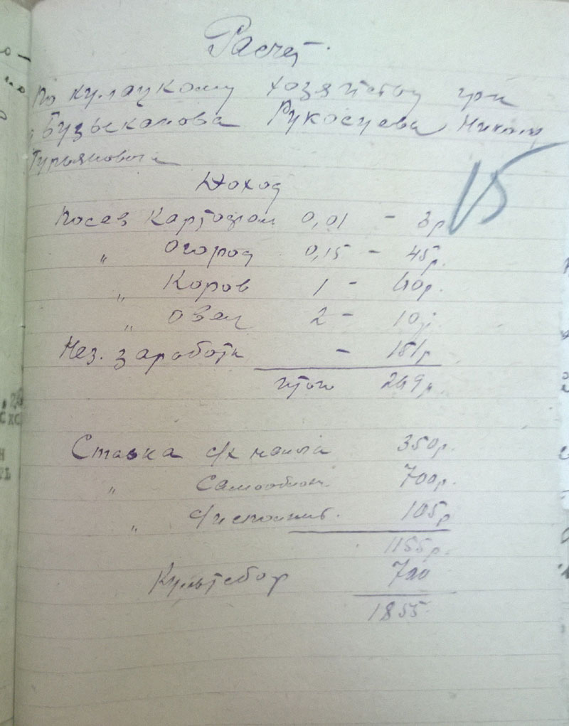 Крепкое было хозяйство у Николая Рукосуева в 29-м году, но к 1934 году остались от него рожки да ножки (если конкретнее, одна корова и две овцы).