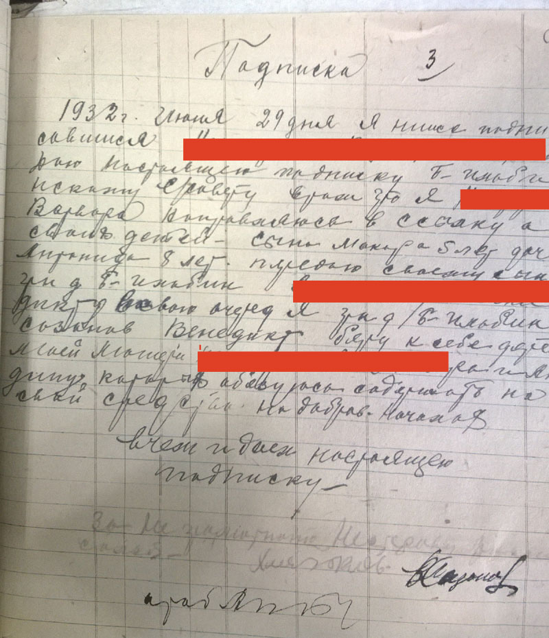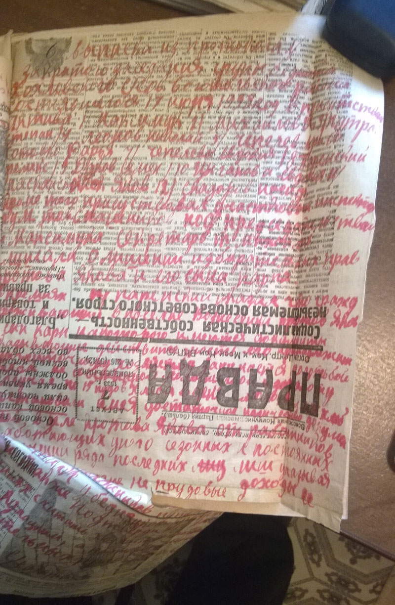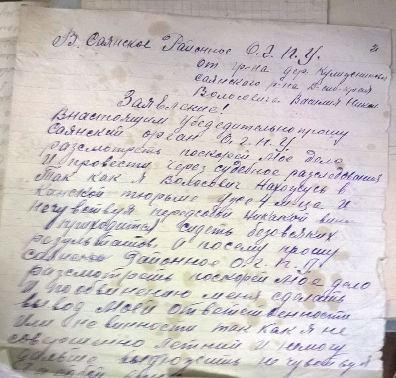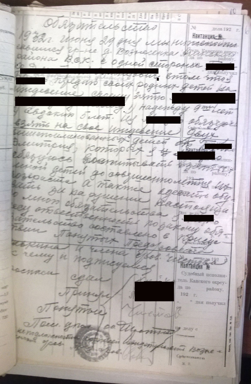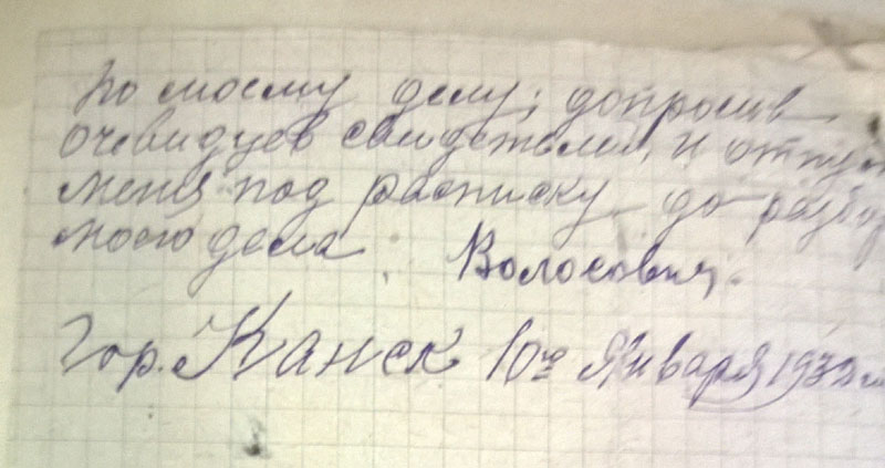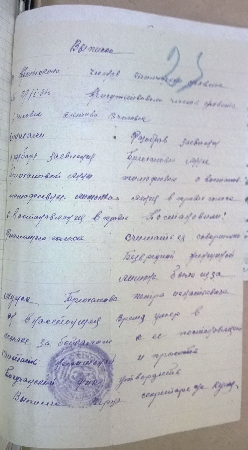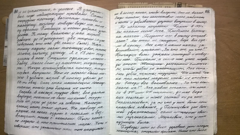 Да, кстати. Поскольку районный архив сгорел, пришлось читать сельсоветские протоколы. Они неприятны сами по себе - детально описано, как люди топят друг друга. Они нечитаемы, поскольку написаны простым карандашом на серой бумаге. В Богучанском районе к тому же типичный протокол выглядит так: