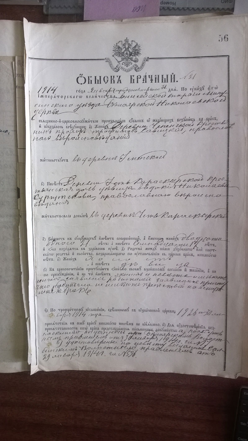 Да, и у меня сложилось впечатление что в Богучанском районе жили люди с четырьмя всего фамилиями: Рукосуевы, Смолины, Кулаковы и Быковы. Другие фамилии встречаются крайне редко, зато среди этих есть полные и почти полные тёзки - уже в каких-то 13 делах. Будет весело сводить всё это в единый список...
