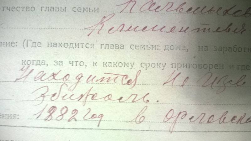 Зато вчера, на третьей папке, понял, как определять выселенных. На них в Богучанском районе составляли специальную рукописную социально-экономическую анкету на один лист. В предыдущих районах такие анкеты составляли на всех лишенцев. А в Богучанском у выселяемых в уголке стоит карандашная подпись "Выселить". Которую я заметил только на второй сотне дел. Это означает, что завтра я затребую опять две первых папки и внимательнее гляну на эти анкеты. Пометка очень важная, особенно в отсутствие протоколов тройки на выселение - одной этой почеркушки достаточно для реабилитации всей семьи. Но как я умудрился не заметить её, читая каждую бумажку в каждом деле - загадка. Впрочем, не загадка - я искал знакомые типичные документы о выселении, а на эти анкеты специальное внимание не обращал... Впредь наука.