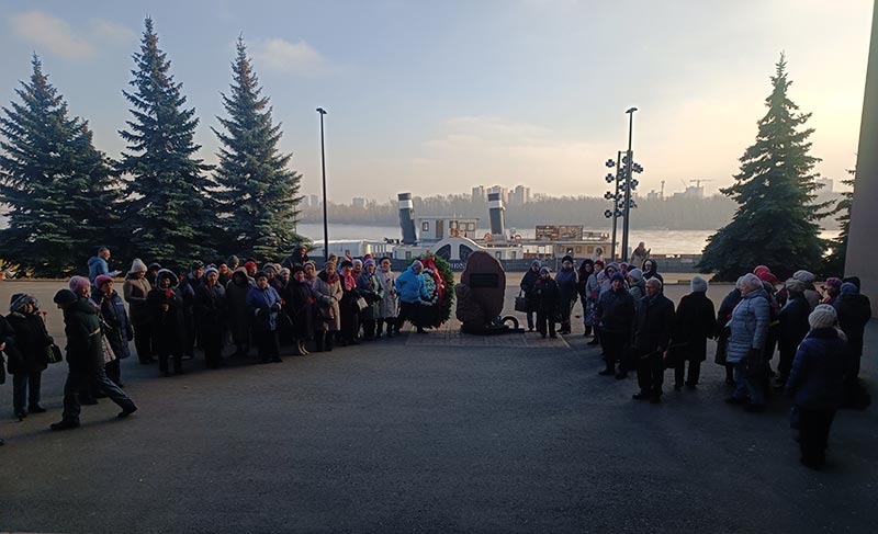 ничего не подозревающие представители министерства социальной политики с венком