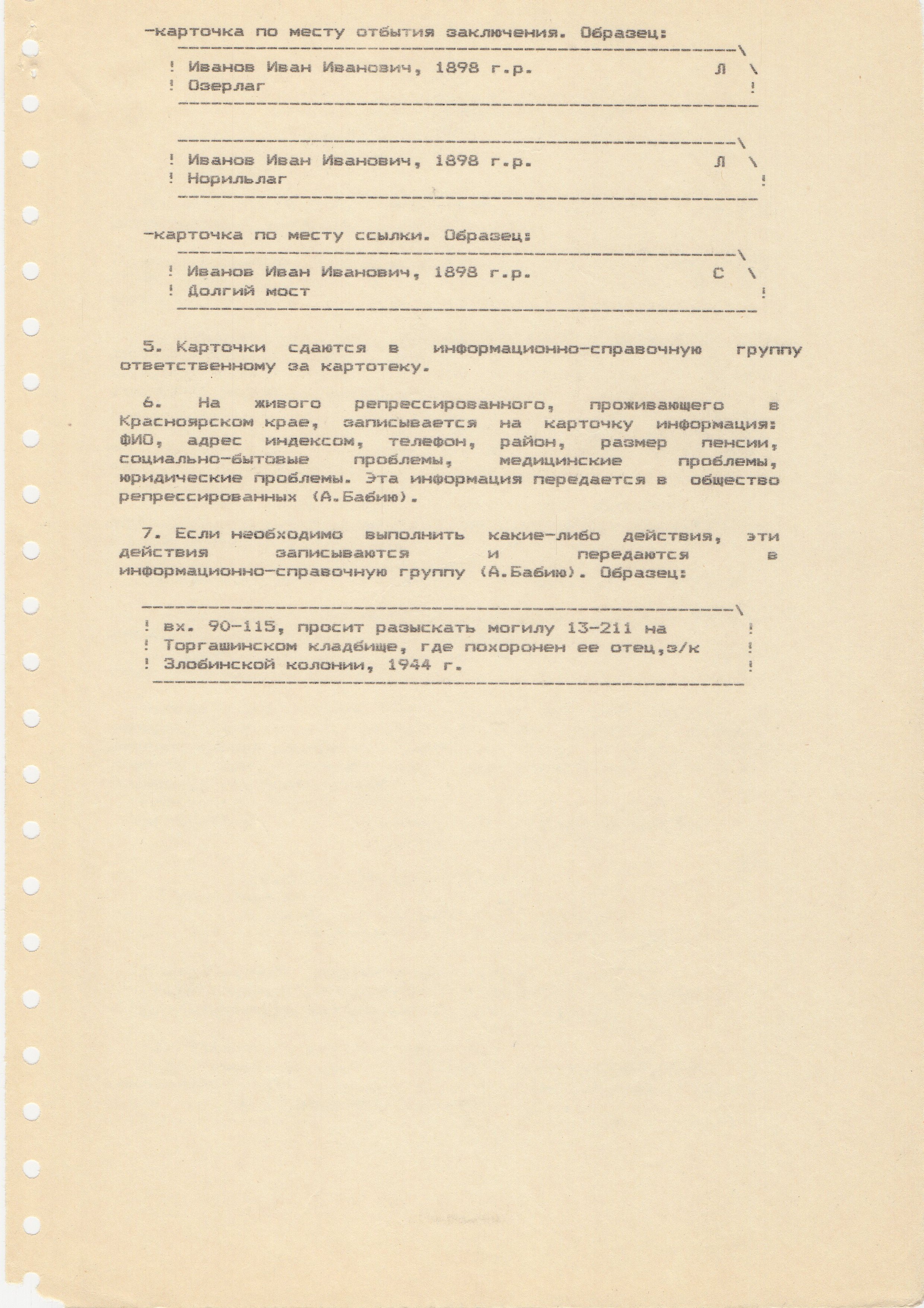 Все эти списки и инструкция постоянно модернизировались (почему вверху дата и стоит), распечатывались и выдавались членам организации.
