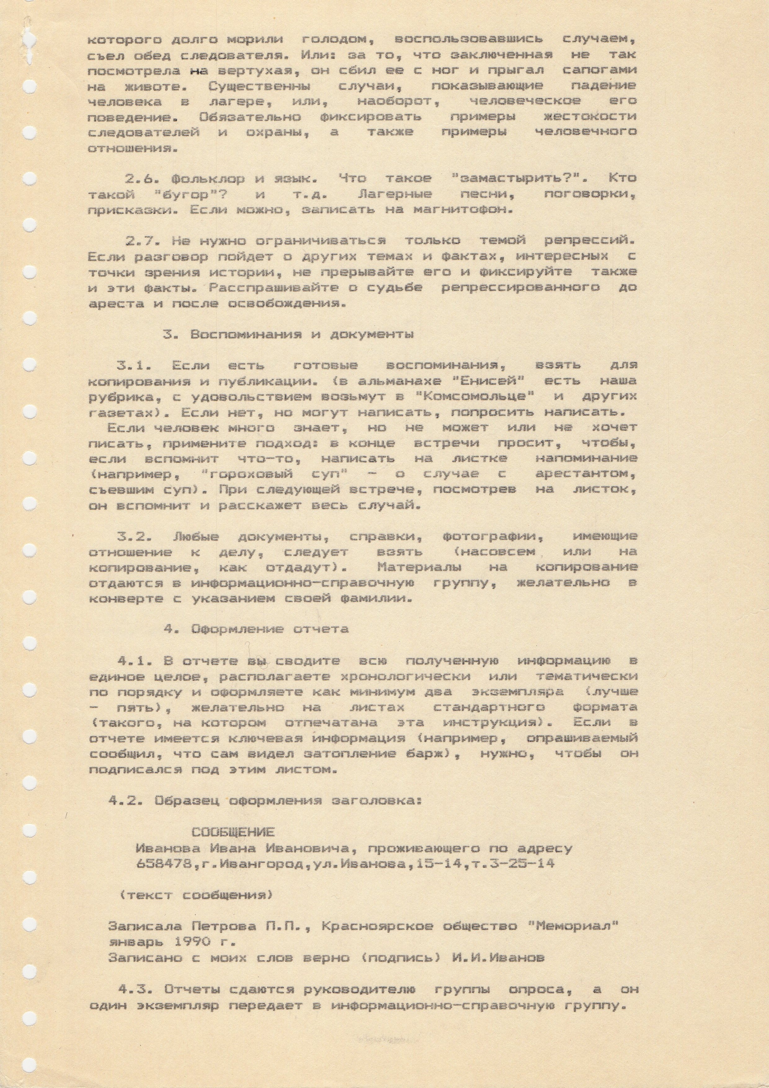 А вот комплект инструкций для красноярских мемориальцев за 1990 год из восьми частей. Надо отметить, что инструкции отпечатаны на принтере. Для девяностого года это нетипично - во всех учреждениях, редакциях и т.п. слышался стук пишущих машинок.