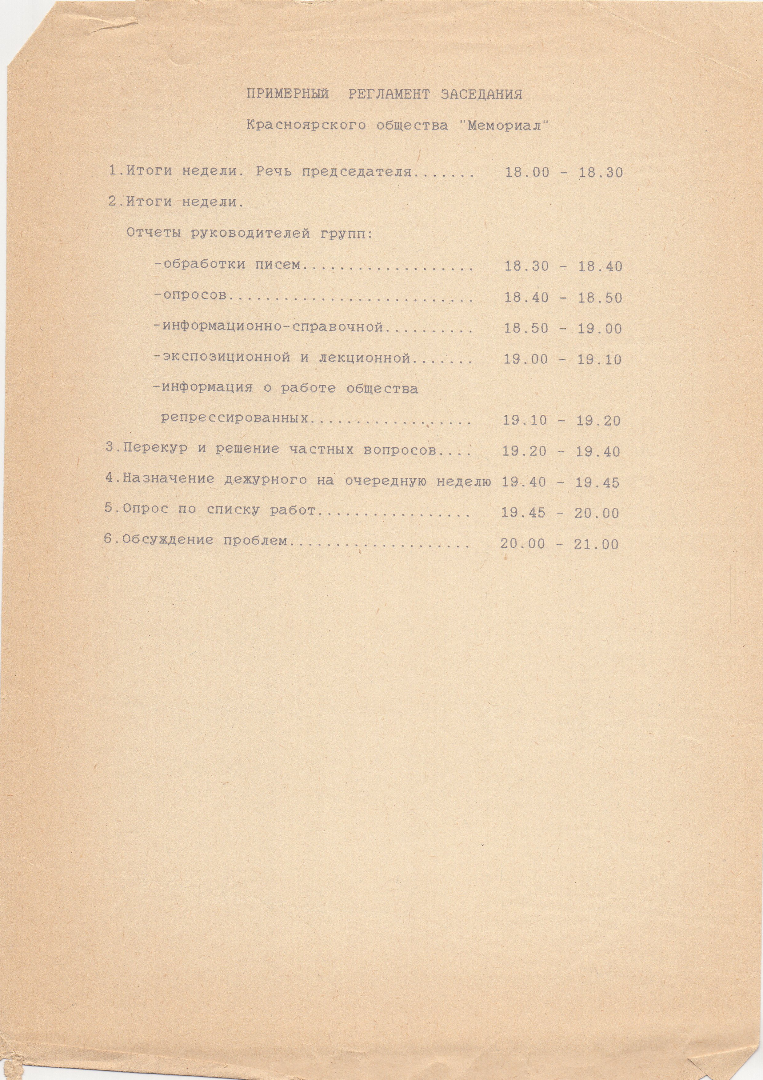 Заседания общества в девяностом году проводились еженедельно, занимали около трёх часов, и был разработан специальный регламент.