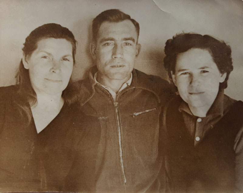 Бодриков Николай Иосифович с женой Лидией (слева) и сестрой Клавдией