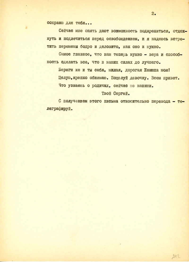 Сейчас мне опять дают возможность подкрепиться, отдохнуть и подлечиться перед освобождением, и я надеюсь встретить перемены бодро и деловито, как оно и нужно.