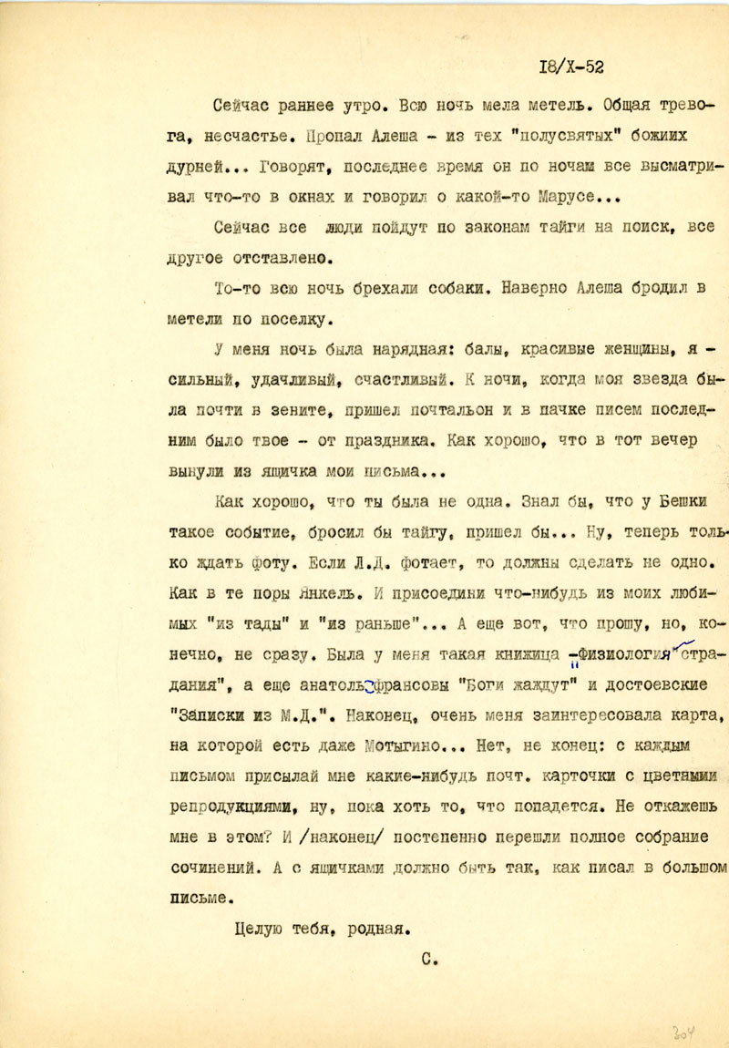 Сергей Бондарин. Письма из ссылки. 1952 г.