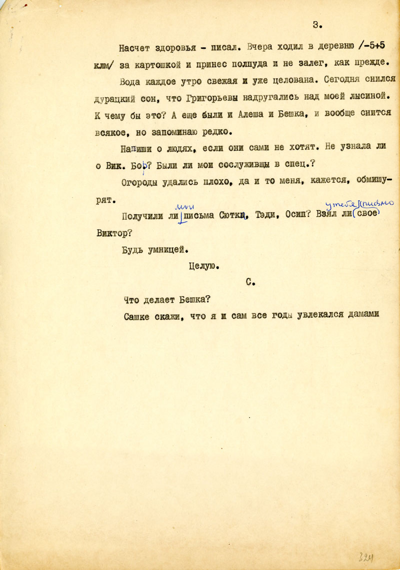 Получили ли мои письма Сютка, Тэди, Осип? Взял ли у тебя свое письмо Виктор?