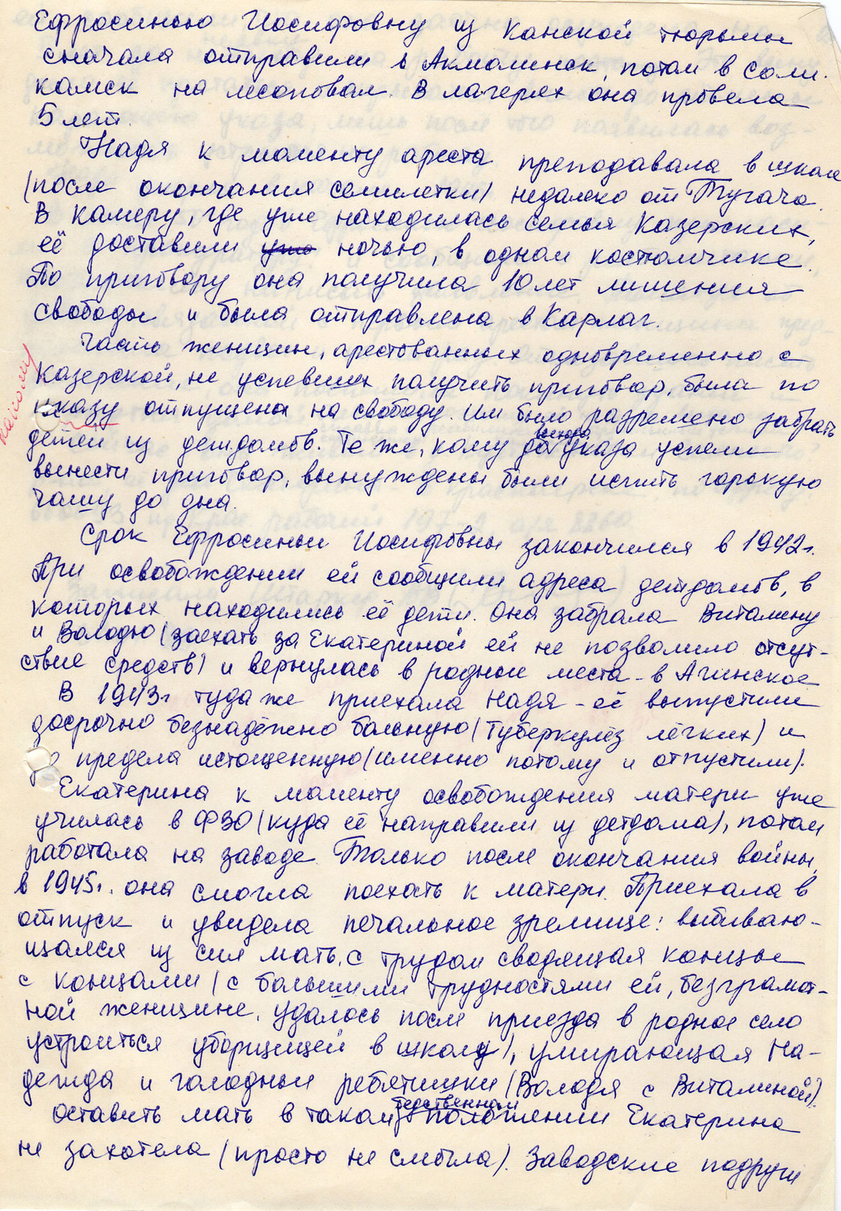 В 1943г. туда же приехала Надя — её выпустили досрочно безнадёжно больную