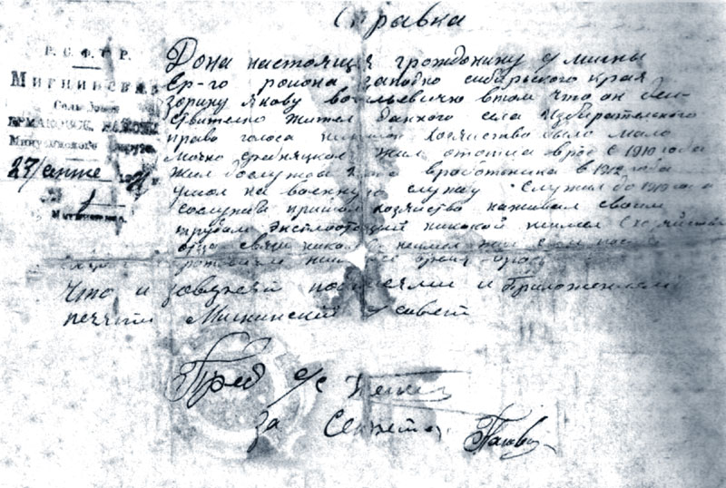 Выполняя политический заказ политбюро ЦК ВКП(б) и лично Сталина, следователи на местах беззастенчиво оговаривали арестованных, стряпали протоколы допросов по своему усмотрению, выдавая желаемое за действительное, под пытками принуждая подписывать заключенных заведомую ложь на себя. Вот перед нами «Дело Минусинского сектора НКВД» за № 16495 - высшая мера наказания на Арляпова Кузьму Ивановича, 1903 года рождения, работавшего пекарем в Усинском сельпо Ермаковского района. Он был арестован органами НКВД 9 мая 1938 года. Обвинялся в том, что «с марта 1937 года являлся членом контрреволюционной повстанческой кулацкой группы, участвовал на сборищах, где обсуждались практические вопросы контрреволюционной повстанческой деятельности, активно проводил среди вольностарателей Усинского прииска разложенческую работу, клеветал на руководителей ВКП(б) и советской власти, восхвалял фашистский строй, врагов народа Бухарина, Рыкова и с целью вызвать недовольство к советской власти среди населения выпекал недоброкачественный хлеб, запекал в него посторонние предметы: паклю, сор. Сознался. Содержится в Минусинской тюрьме. Секретарь тройки - Потапов». Постановление тройки УНКВД от 27 мая 1938 года: «Арляпова К.И. расстрелять, лично принадлежащее ему имущество конфисковать». Вот так все очень просто - нет человека, нет проблем. Его жена, Варвара Андреевна Арляпова осталась в 35 лет вдовой с тремя малолетними сыновьями на руках и с клеймом «жена врага народа». Следователь знал, что золотоискатели жили почти в сотне километров от Усинска, куда не было дорог, кроме горной тропы и зимней дороги по реке Ус и по речке Золотая. Мог ли туда бегать Арляпов и агитировать против советской власти рабочих прииска? Конечно, нет. Нет в протоколе допроса свидетелей контрреволюционной деятельности, нет конкретных документов и дел повстанческой организации, в которую входил как активный член Арляпов. Вся эта абсурдная ложь выдавалась за правду, в которой якобы признался Арляпов.