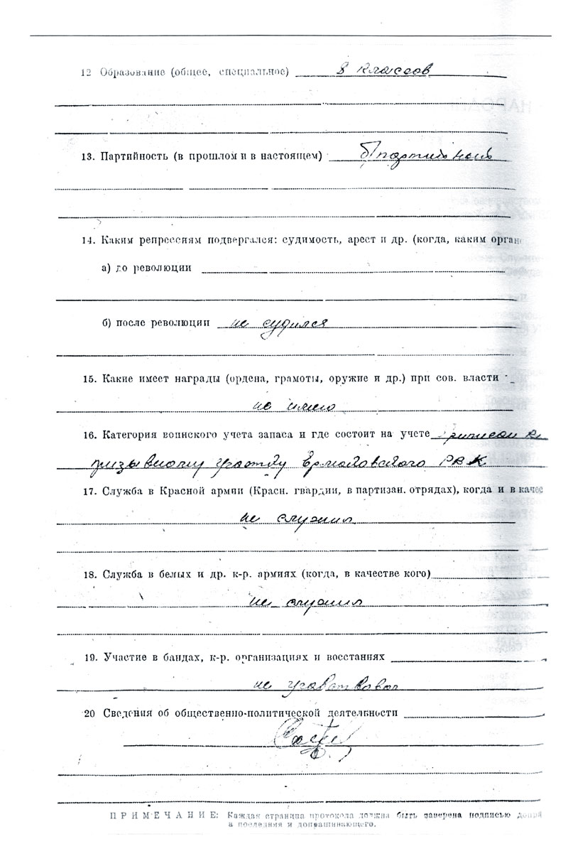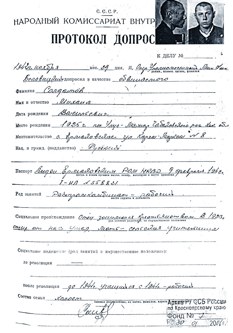 Фрагмент архивно-следственного дела Солдатова М.В.