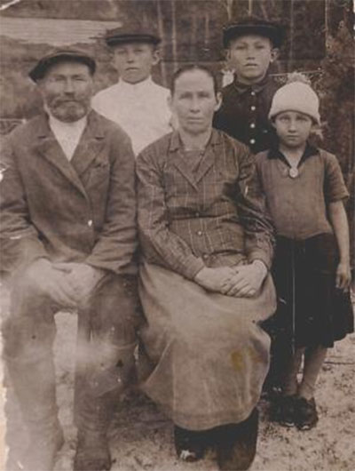 В 1930 году был раскулачен и сослан в Ольховский золотой прииск Артёмовского района в п. Чибижек. Там в 1932 году и родилась в семье Складчиковых восьмая по счету дочь Александра.