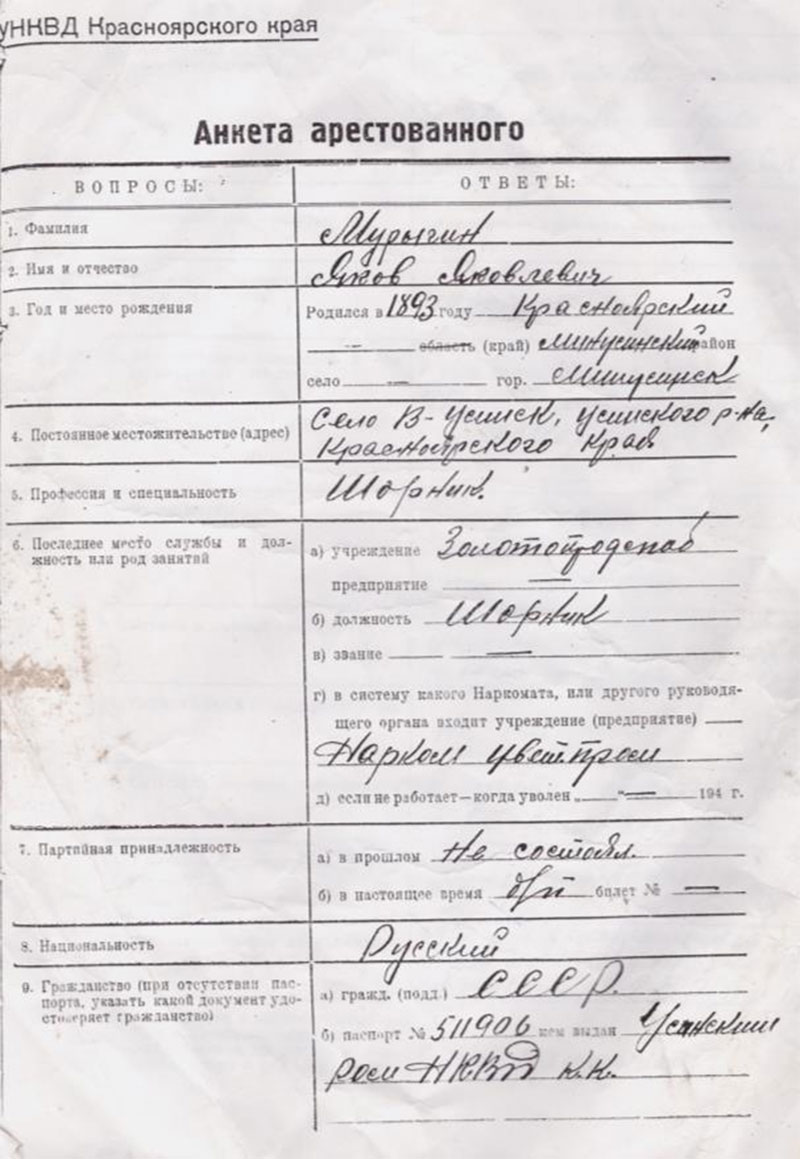 В это и поверить–то никто не мог, Яков Яковлевич был неграмотным и очень скромным человеком. Увезли его в Минусинскую тюрьму. На суд привезли Якова Яковлевича в мае 1941 года¸ в родное село Верхнеусинское, тогда он виделся с семьёй в последний раз. Екатерина Яковлевна вспоминает, что отец выглядел растерянным и напуганным. На вопросы «Папа, за что тебя?», он отвечал: «Не знаю».
