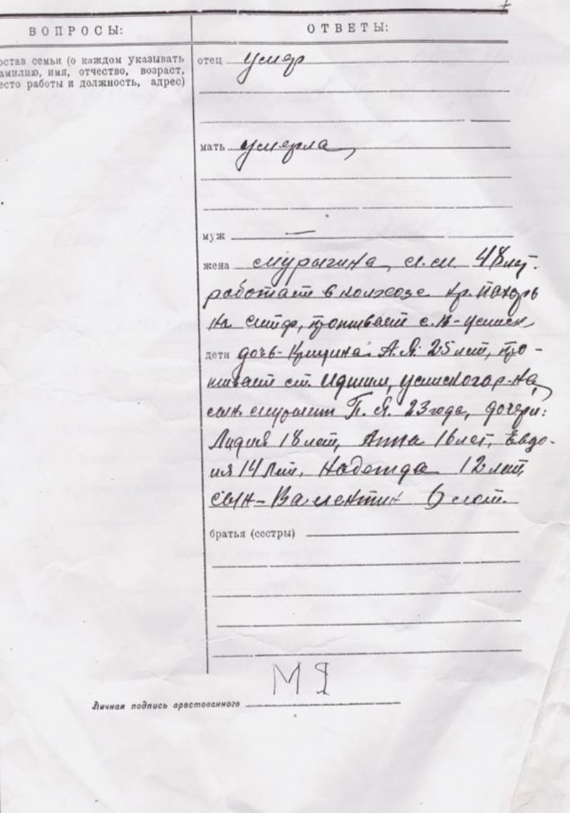 Её родители – Мурыгин Яков Яковлевич (1893 г.р) и Мурыгина Лидия Мартыновна (1892 г.р.), уроженцы города Минусинска, приехали в село Верхнеусинское в 1932 году.