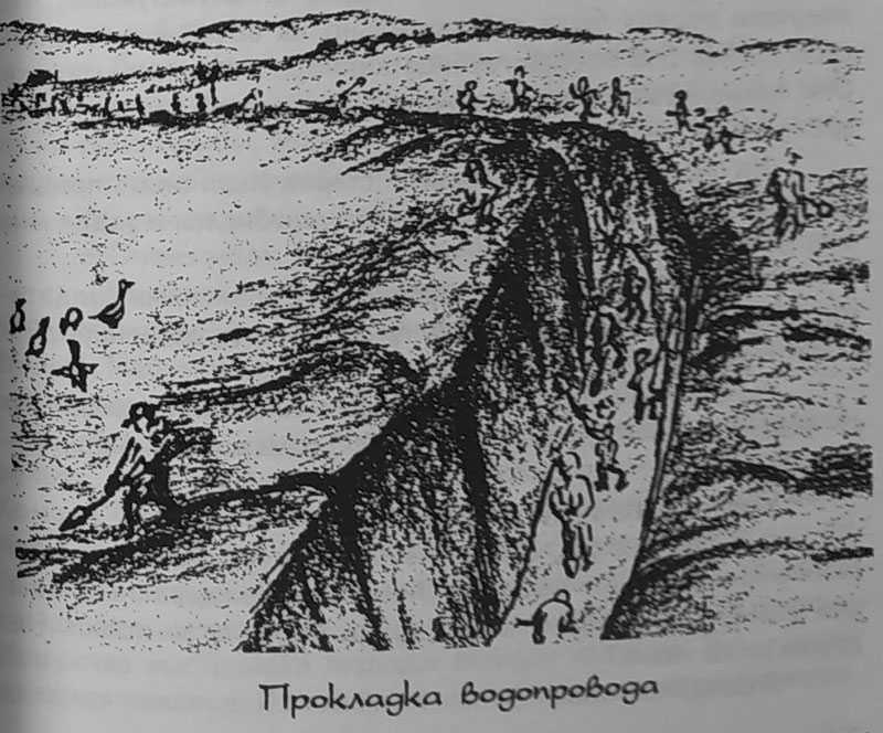 На следующий день военврач принесла длинные ящики, в днищах которых были пробиты дыры. Мы влили в ящики воду и через струи из дыр черпали воду ладонями и умывали лица.