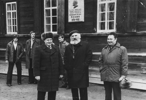 Группа игарчан в Шушенском: в центре В.А.Павлов, Л.А.Барановский, О-Г.Л-Г.Каминов. Поощрительная поездка в связи с юбилеем В.И.Ленина, 1980 год.