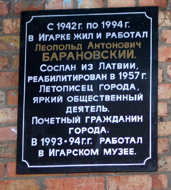 Памятная доска Л.А.Барановскому в г.Игарке.