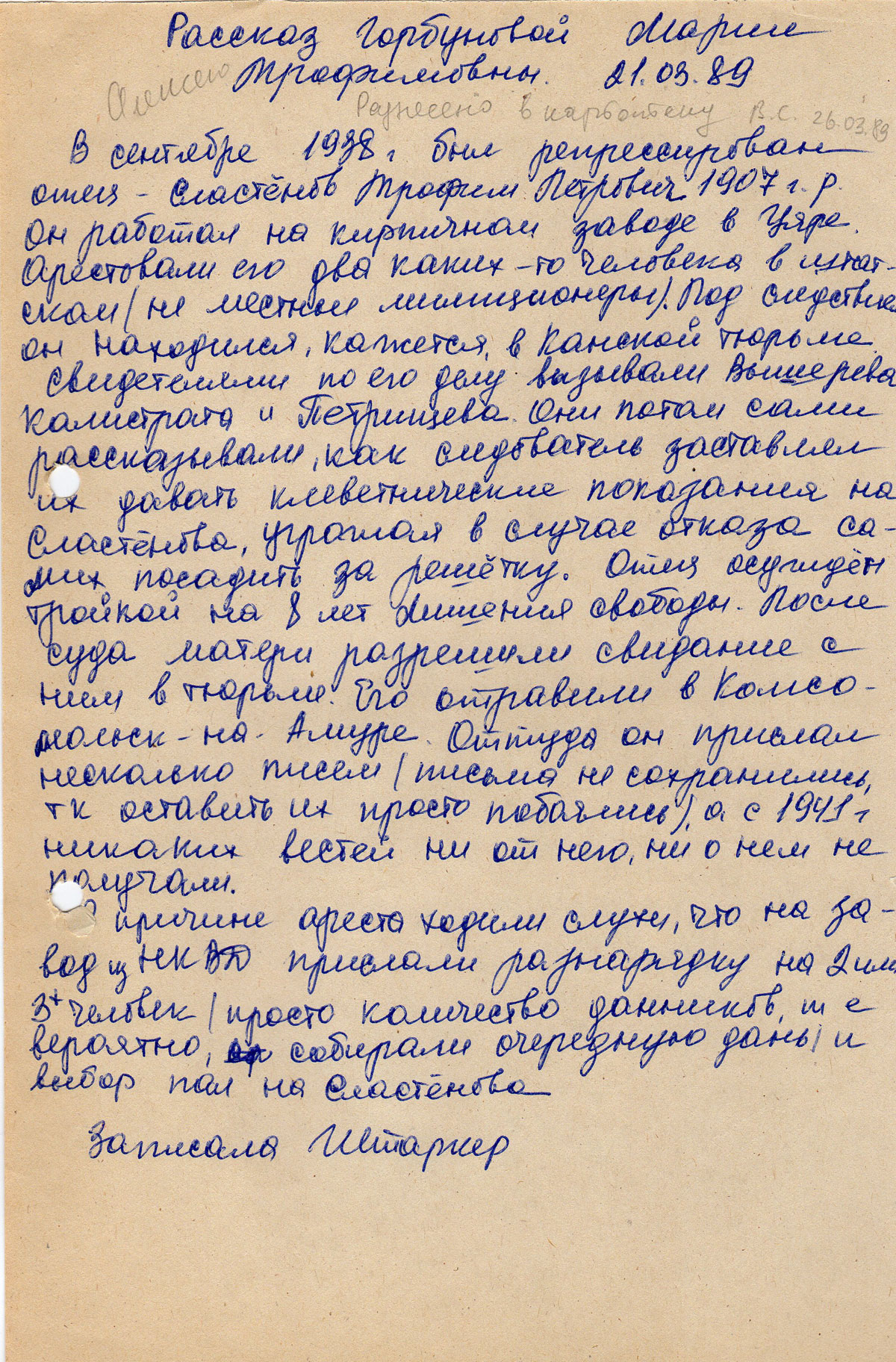 Рассказ Горбуновой Марии Трофимовны