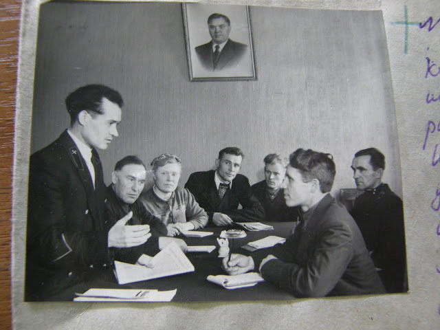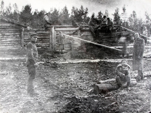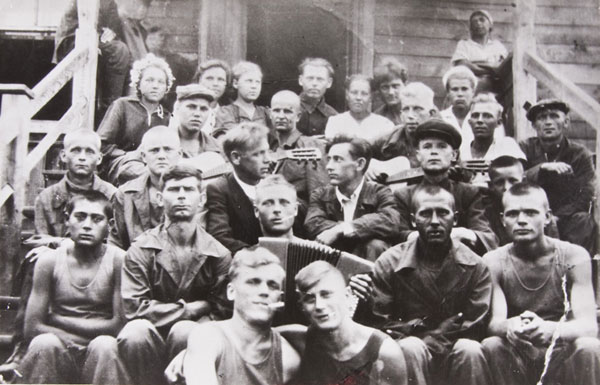 Заключённые на крыльце клуба "Строитель" пос. Бородино