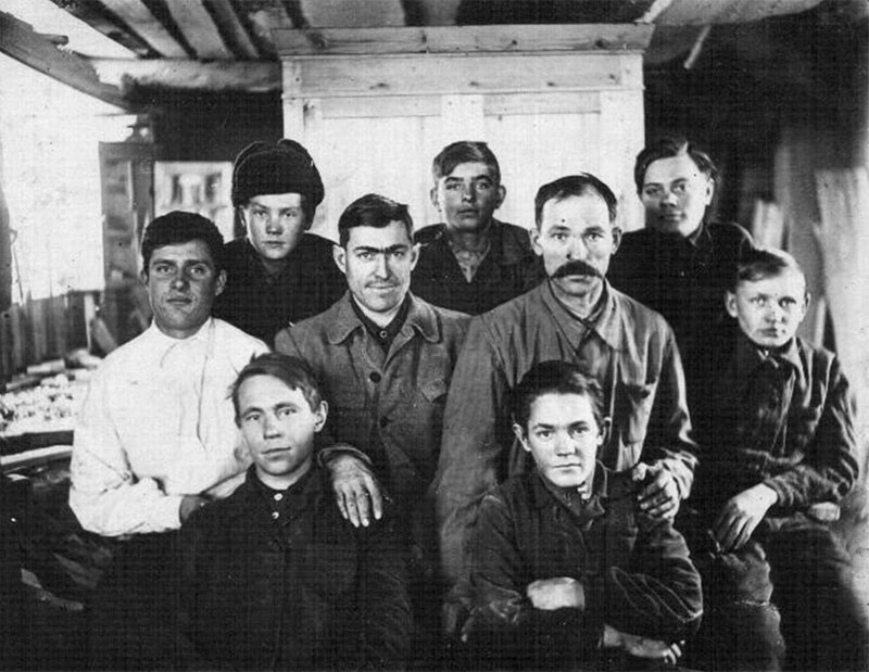 Столярный цех 1949г. столярке, выдавал по несколько планов в месяц. В работе он был безотказным, выполнял любые сложнейшие заказы, с которыми никто не мог справиться, про него говорили, что у него золотые руки.