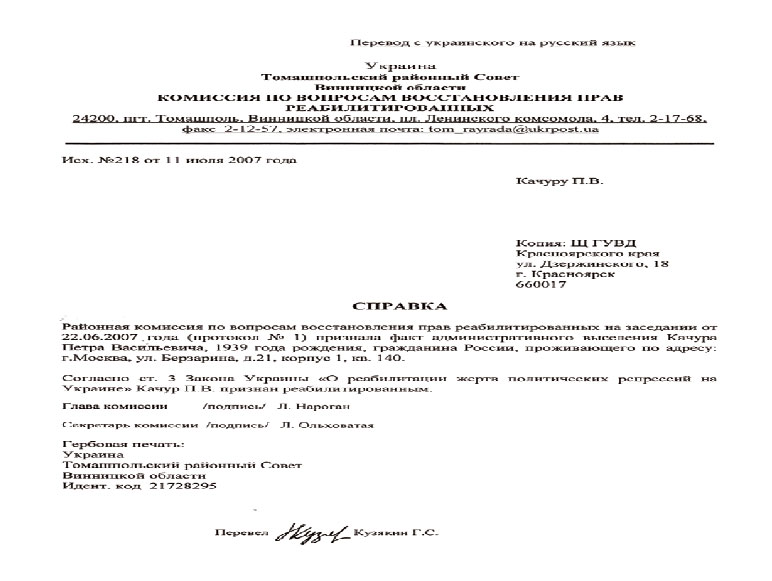 Что она думала в эти дни, недели, месяцы? На что надеялась? На кого или кому молилась? Она ведь писать не умела! А, где-то через год, папа получил от нее письмо, написанное мамой лично (в теплушках, на пересылках, она, думая постоянно, как она будет общаться со своей семьей, с мужем, детьми, мама научилась читать, а затем и писать). Так мы узнали, где наша мама. Она, наверное, уже и не думала, что увидит свою семью. За этот год она уже приобрела (в свои 29) лет болезни сердца, ревматизм и гипертонию. Она не знала, как отец бился, чтобы освободить ее, куда только он не обращался! Сколько платил! А когда получил письмо, то взял Володю и уехал с ним к маме. Этим он спас ее. А сколько было таких исковерканных судеб. Сколько людей до сих пор разыскивают друг друга!
