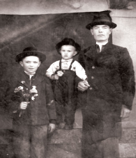 И вот однажды пришло письмо от мамы! Из далекой Сибири, из Красноярского края, из прииска Викторовский. Даже царь своих политических врагов – революционеров туда не ссылал! Письмо написала мама сама: она научилась читать и писать! Чего только она не передумала, чего только не испытала за это время! И научилась писать, чтобы собственноручно дать нам весточку, как бы лично самой пообщаться с папой и с нами! Бедная наша мама! Отец как-то ожил, чуть повеселел: жизнь продолжается. Вскоре в селе праздновали какой-то религиозный праздник, а надо сказать, что по древнему обычаю в такие праздники люди наряжались и семьями шли к церкви. Отец нарядился сам, нарядил нас с Вовкой, и мы пошли к церкви, там было много людей, как всегда из Томашполя пришел еврей – фотограф Сема, и нас сфотографировал (для мамы). На фото мы втроем, все в шляпах - тогда мода такая была, улыбались маме, как могли. Сёма фото делал очень хорошо и аккуратно. Это был бедняк из еврейской семьи, он постоянно приходил или приезжал в село на велосипеде (автобусов тогда не было), если были праздники, свадьбы и другие торжества. Я всегда удивлялся Сёминому долготерпению: сколько его обзывали, оскорбляли, и даже били пьяные мужики, ломали его велосипед, а он всегда приезжал и все прощал глупым и жестоким людям.