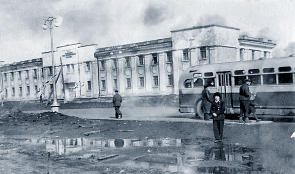 Зимой 1951 г. сосед сверху нас затопил горячей водой, весь потолок обрушился. Нам дали квартиру в Горстрое по улице Комсомольской, 4. Здесь уже была новая школа № 1, где все мы начали учиться в восьмом классе. Но я не закончил восьмой класс. В апреле 1952 г. наша семья уехала из Норильска. Обратно я вернулся в 1962 г. От старых домов осталось только здание Севастопольская, 7 (строительный дом № 13), где размещались окружком профсоюзов и УЖКХ. В первые годы на втором этаже здесь был кинотеатр, мы прорывались в него бесплатно. Купим одному билет, он заходит в зал. Кино только начиналось — он сбивал запорный крюк, а мы шмыг под стулья и смотрим фильм.