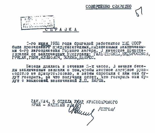 Григорий Климович: «8 июля следственные органы приступили к фабрикации уголовного дела об антисоветском заговоре в Горлаге»