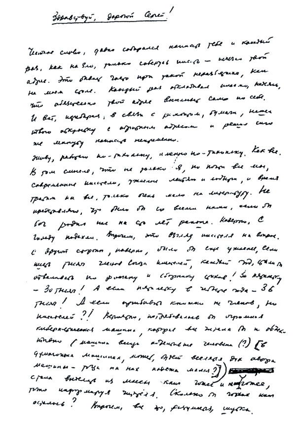 «Здравствуй, дорогой Сергей! — писал мне Давид 26 ноября 1969 года. — Честное слово, давно собирался написать тебе, и каждый раз, как назло, только соберусь писать, — исчезал твой адрес. Это бывает часто при такой неразберихе, как на моем столе. Каждый раз откладывал письмо, надеялся, что обязательно твой адрес выплывет сам по себе. И вот, перебирая в связи с ремонтом бумаги, нашел твою открытку с обратным адресом и решил сию же минуту написать непременно.