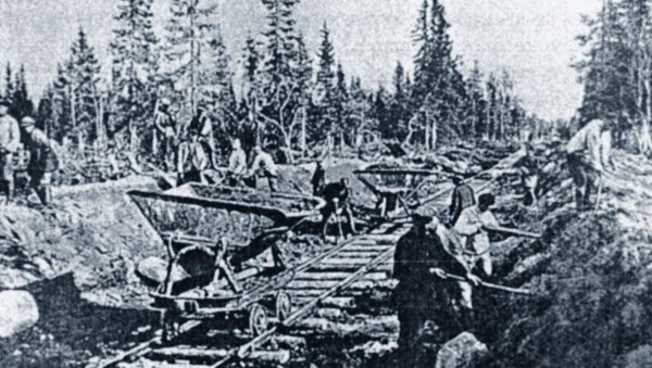 Строительство Соловецкой железной дороги. 1928 г.