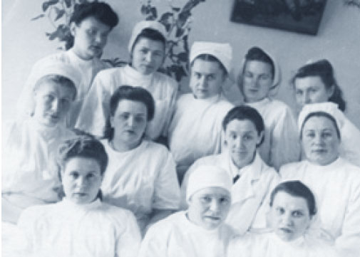 Сидят в первом ряду (слева направо): медсестра Валентина Труханова, фамилии двух
