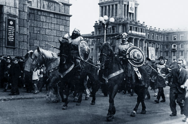 Норильский фестиваль. По Октябрьской площади скачут былинные герои.