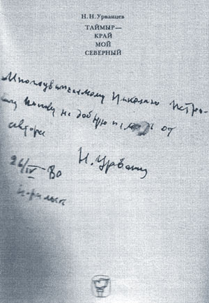 Автограф Николая Урванцева. Норильск, 26 апреля 1980 г.)