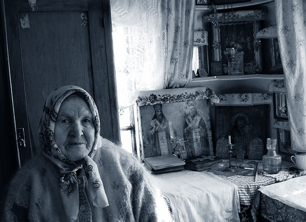 — Я тоже сидела. Дочке было 14 лет… А меня пришли и забрали. Осталась она одна, и ночевать не с кем. Взяли меня за то, что я стала верующей, — только за веру, больше причины не было. Ну, детство у меня было бедное-бедное, невозможно высказать: ни есть, ни одеваться — ничего не было. Ну, одна мама, а нас, детей, пятеро, где ей взять? Забрали у нее трех сыновей на войну — все погибли. Один сгорел в танке, танкист был Григорий. Другой потерялся без вести, еще один умер от ран — это Тимофей и Иван. Сестра старше меня еще была, работала скотником, ботинки на деревянной подошве… А потом я уже выбилась, жила хорошо, работала пять лет в магазине в деревне, в большом универмаге центральном. Муж у меня был, потом дочка родилась. А потом вот… У меня душа болела, чего-то ей еще не хватало. Вот все: и мужик хороший, и дочка растет на глазах, одеваться хорошо стали, достаток есть, и мама с нами жила тогда, а душа болит, чувствует вечные муки страшного ада. Раз приснилось, что мама готовит обед ребятам, а в дверях Он стоит, потом пошел прочь. «Ты куда пошел-то?» — «Так вам же нечем нас кормить…» Мама скорей-скорей вскочила, обед сготовила, старушек позвала. Вот такие снились сны. Стали старушки к нам приходить, молиться — ранешние люди все были верующие. Рассказывали: вот был Иисус Христос, на кресте распяли его, за всех нас страдал.