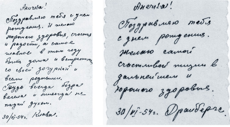 Я уверена, что маму многие в лагере уважали, ценили и вспоминали добрым словом! Мама говорила, что среди осужденных было очень много одаренных людей. Она очень любила танцевать и принимала самое активное участие в художественной самодеятельности. Рассказывала, как они ухитрялись шить наряды для выступлений. Письма домой мама передавали через вольных. А какие посылала рисунки! Мама отправила сестрам для меня открытки и поздравления, которые я бережно храню до сих пор.