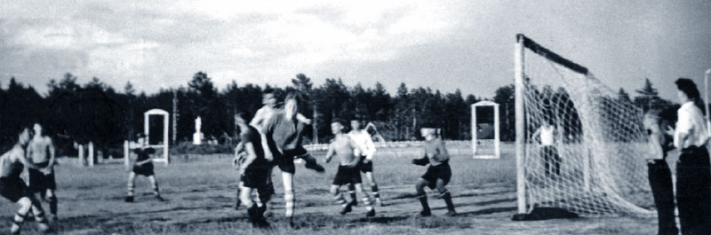 На берегу Енисея сделали специальные деревянные решетчатые купальни. В них купались дети маленького возраста. Для старших буйками отгородили часть берега. В Енисее очень сильное течение и довольно холодная вода. Против течения плыть было практически невозможно. Несмотря на все это, нас из воды приходилось выгонять буквально насильно. А взрослые, например, наша Лена, даже переплывали Енисей. Сейчас она об этом вспоминает с ужасом. Из-за сильного течения желающим переплыть Енисей приходилось заходить вверх по течению несколько километров, тогда их течение выносило на противоположный берег примерно напротив лагеря. Для возвращения нужно было проделать ту же процедуру. В последующие годы Енисей неоднократно переплывал старший брат Борис, когда бывал в «Таежном». Я на такой шаг не решался.