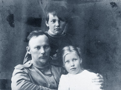 Июль 1917 года. Красноярск. Е.Е.Колосов с дочерью Еленой и сыном Евгением.